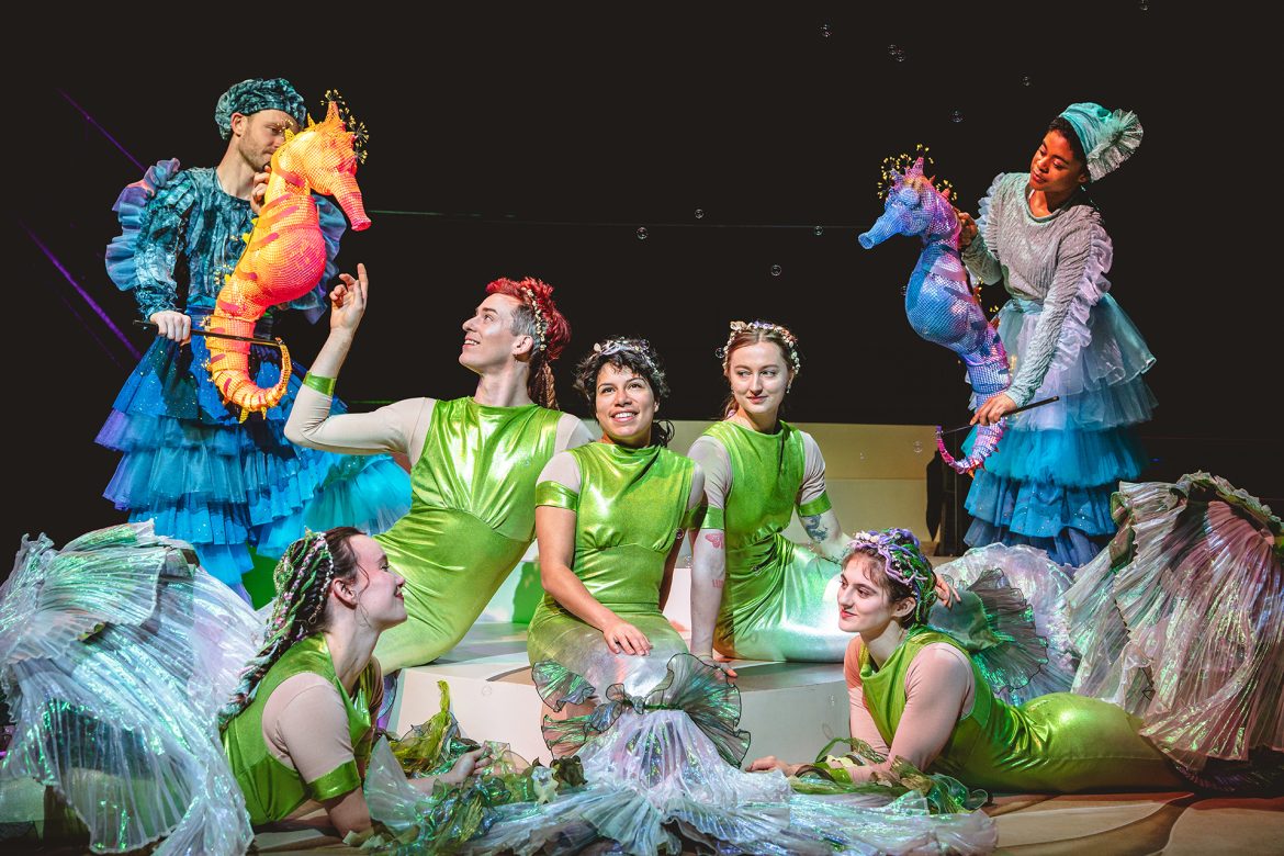 The New Vic’s The Little Mermaid is a charming, imaginative and visually gorgeous family show that will delight children and impress adults with its circus-infused staging. The aerial work, set and overall design are genuinely exceptional. However, the weaker second act, occasionally lacklustre songs and some confusing staging choices—most notably in the Sea Witch sequence—mean the production never quite reaches the emotional or narrative heights it promises.